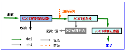 工藝流程為:進水—雙旋流除油器—緩沖罐—速沉器—全自動精細過濾器 — 出水。