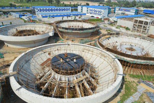 工作特點(diǎn):機(jī)械攪拌(原稱機(jī)械加速)澄清池屬泥渣循環(huán)型澄清池,其特點(diǎn)是利用機(jī)械攪拌的提升作用來完成泥渣回流和接觸反應(yīng)。加藥混合后的原水進(jìn)入第一反應(yīng)室,與幾倍于原水的循環(huán)泥渣在葉片的攪動(dòng)下進(jìn)行接觸反應(yīng)。然后經(jīng)葉輪提升至第一反應(yīng)室繼續(xù)反應(yīng),以結(jié)成較大的絮粒。再通過導(dǎo)流室進(jìn)入分離室進(jìn)行沉淀分離。這種水池不僅適用于一般的澄清也適用于石灰軟化的澄清。
